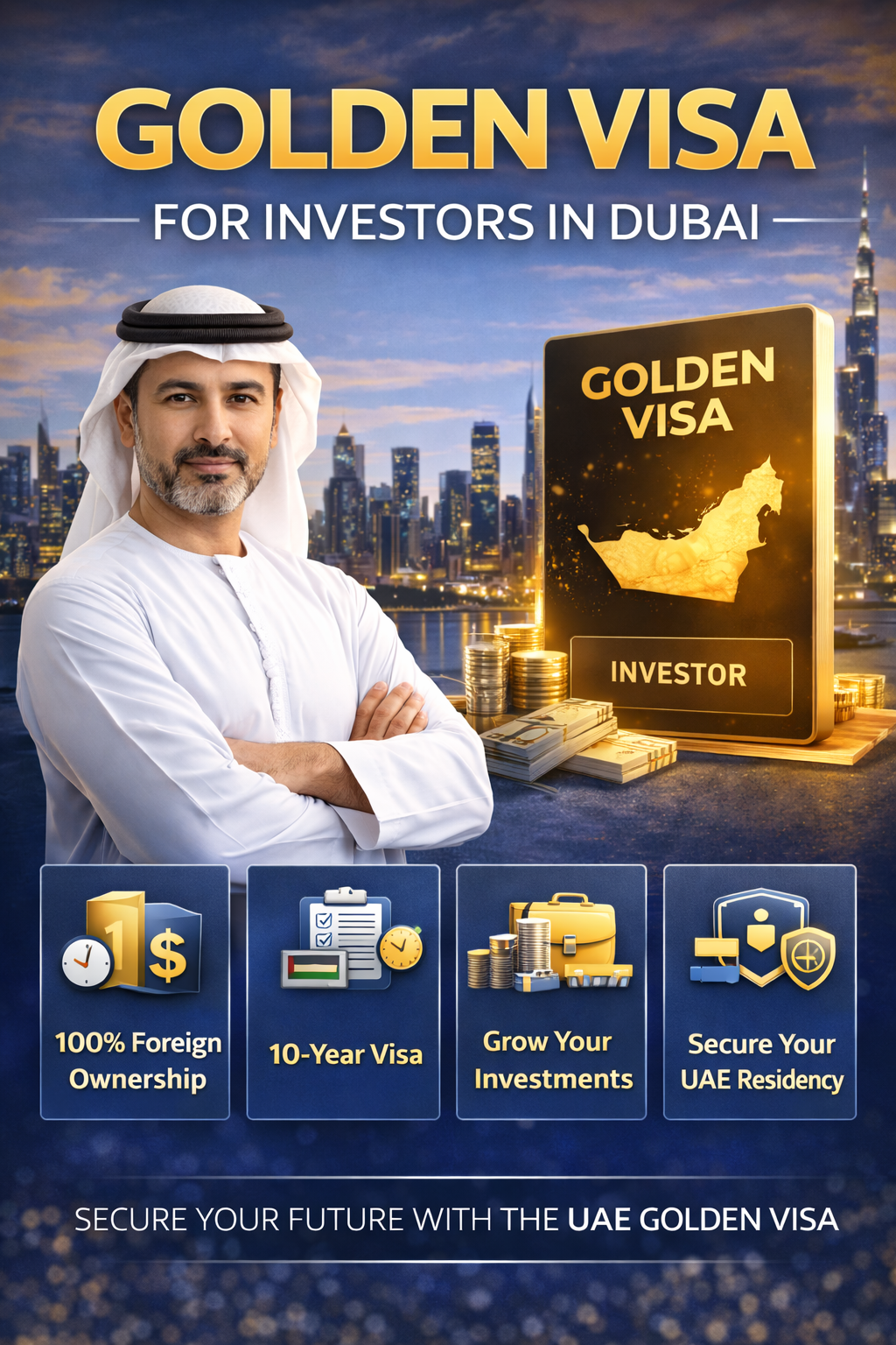 The Golden Visa for Investors in Dubai is a powerful opportunity for global investors to secure long-term residency, business freedom, and access to one of the world’s strongest economies. With flexible investment options, a high-quality lifestyle, and long-term security, it continues to attract thousands of investors each year. Those looking to expand their wealth and secure their future will find Dubai’s Golden Visa a smart and strategic choice.